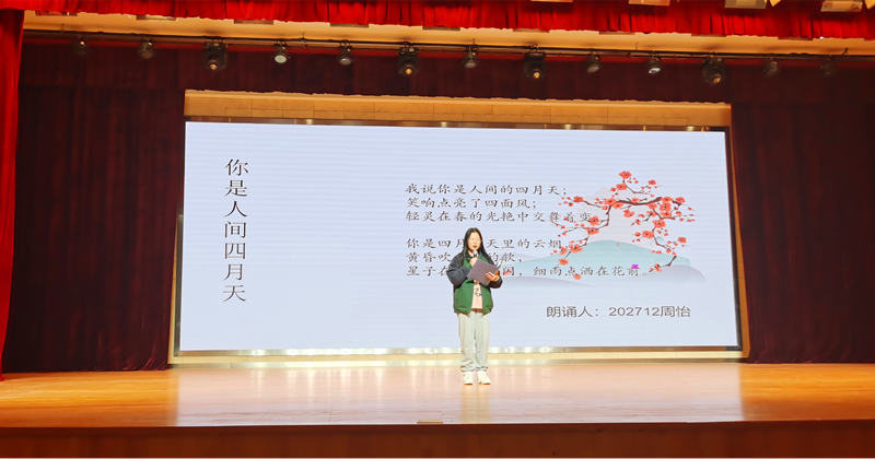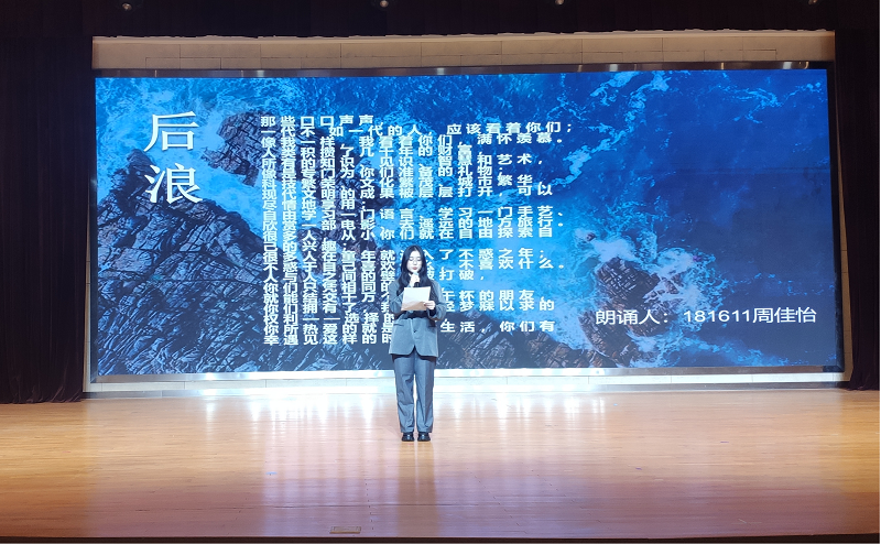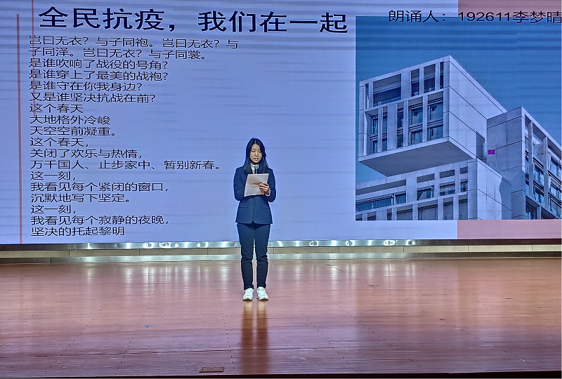 本次比赛由朗诵和模拟主持两个环节组成。选手们按抽签先后顺序朗诵经典文章,周怡朗诵的《你是人间的四月天》、周佳怡朗诵的《后浪》、李梦晴朗诵的《全民抗疫,我们在一起》以及唐宇辰朗诵的《歌颂祖国》等文章,铿锵有力的声音、充沛饱满的感情、自信大方的形象赢得老师和同学们的阵阵掌声。