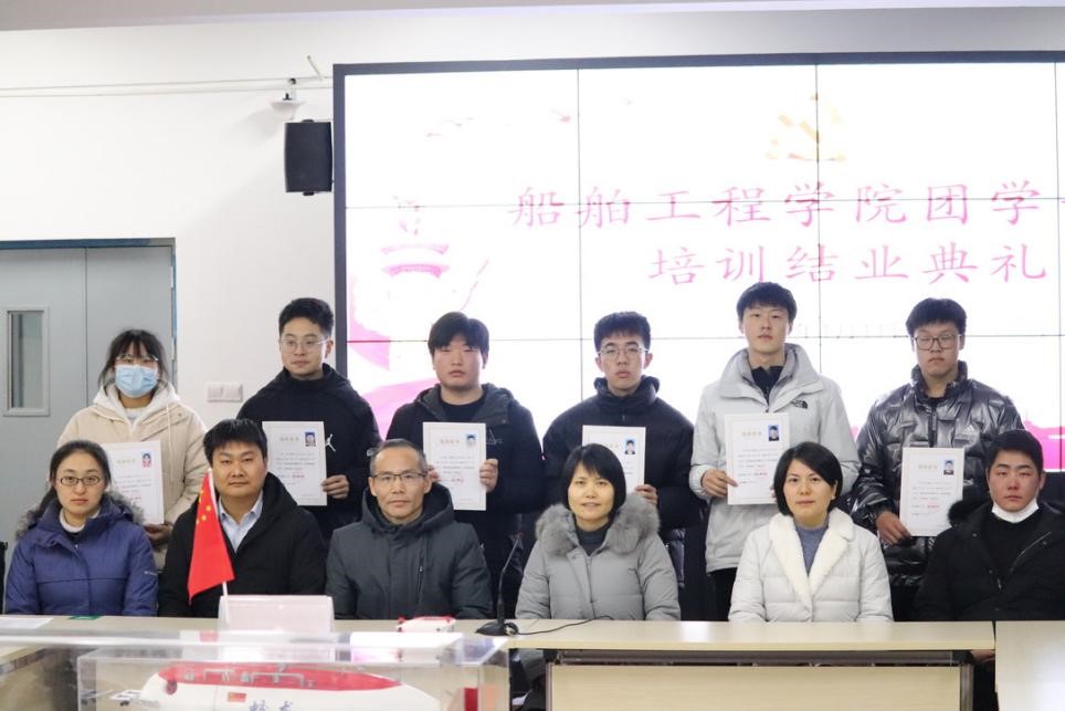 2021年1月11日,船舶工程学院在焊接大屏室举行2020学年团学干部结业典礼,学院领导、学工老师以及培训班教师参加了结业仪式。本次培训工作共培训学院团学干部50人,对提升团学干部的思想政治水平和工作能力十分有帮助,有助于提升学院学生管理工作水平。