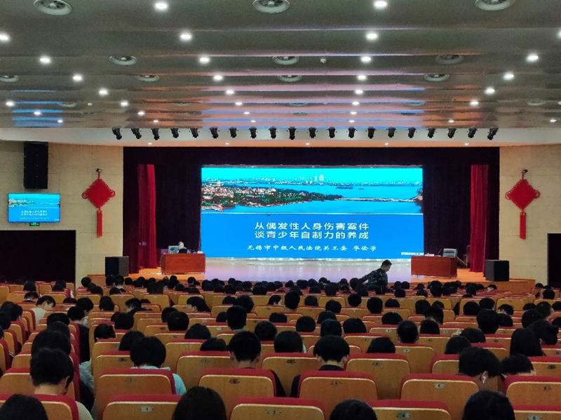 华俭学主任首先讲解了现实生活中人身伤害案件的起因,一般由起初的一件小事演化成刑事案件,主体身份也由最初的权益受害者变成刑事被告人。然后进行了故意伤害案案例的分享,对案例进行解读,告诫同学们要加强自我防范意识,树立法治观念,在成长的道路上与法同行。最后,华俭学主任向我院捐赠了30本无锡中院编印的《民法用典30问》书籍。