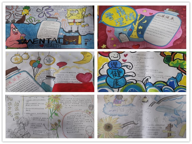 此次活动得到了同学们的积极响应,大家紧紧围绕本次主题“阳光心态 快乐成长”,借助手中的画笔绘制成了一幅幅版面精美、内容丰富、布局新颖、书写美观的手抄报作品。同学们以青春为笔,泼墨为画,在手抄报中表达心中所想,在一字一句中表达了对心理健康的关注,在一幅幅插画中展现了对美好未来的想象。