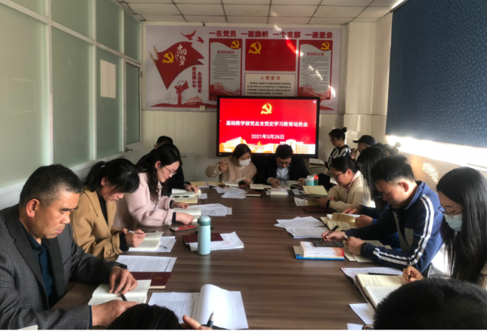 326日下午,基础教学部党总支在部门会议室开展党史学习教育,部门全体党员参加会议,会议由基础教学部党总支副书记杨凤琴主持。