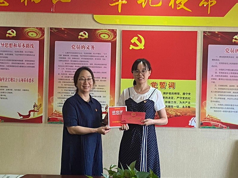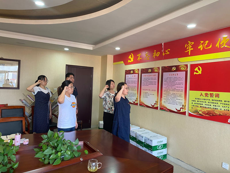 活动开始,首先由过政治生日的党员同志依次讲述自己的入党故事,重温入党初心,其他党员也分享了自己的入党经历。随后,全体党员面向庄严的党旗,在朱雨兰书记的带领下重温入党誓词,在精神上再次受到洗礼。党员们重温的不仅仅是一字一句的誓词内容,更是作为一名共产党员的初心使命,铮铮誓言,既是对入党初心的回顾和洗礼,也是对使命担当的承诺和信心。最后,由支部书记沈丽兰同志为本次集体过“政治生日”的党员赠送生日贺卡及学习书籍并致以祝福。党员们纷纷表示党组织的祝福让人既温暖又振奋,定会牢记入党初心和誓言,对党忠诚,积极工作,用实际行动诠释新时代合格党员的标准。