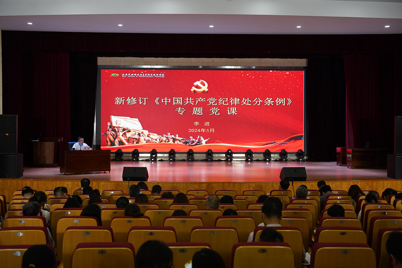 会上,李进就新修订《中国共产党纪律处分条例》(以下简称《条例》)修订背景、历次修订情况、重点条款解读学习等三个方面展开讲授,结合学校实际,通过身边人、身边事,深入浅出地阐明条例的内涵要义,引导党员特别是党员领导干部认真学习《条例》,搞清楚党的纪律规矩是什么,弄明白能干什么、不能干什么,筑牢纪律规矩意识。