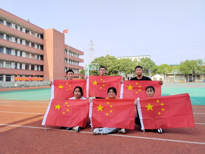同学们手拿国旗,选取背景,摆放造型。圆形,象征祖国一定能统一,人民一定能团圆;国旗同框,象征祖国的利益高于一切;师生同框,象征中华传统传承接续,代代相传。保安、物业与国旗同框,象征着要为师生做好坚实的服务保障,请祖国放心。总之每一名师生、教职员工都要让鲜艳的五星红旗与自己同框,将祖国印在心间,愿与祖国同呼吸共命运,并为祖国繁荣昌盛奉上绵薄之力。