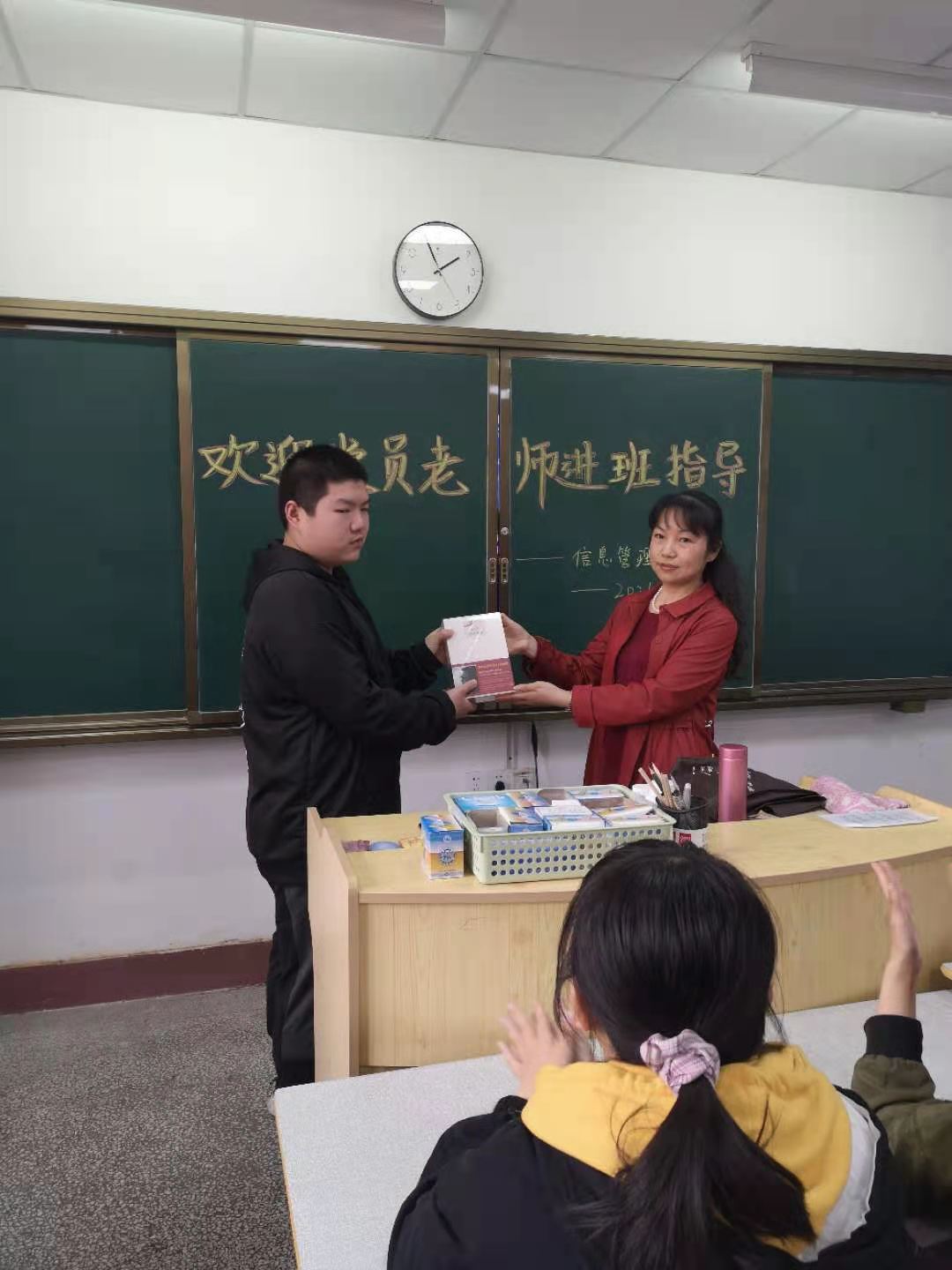 首先邵敏珠为同学们推荐并赠送了著名作家路遥撰写的《平凡的世界》,引导学生养成经常读书的好习惯,同时希望同学们学习书中主人公面对困境艰苦奋斗的精神。