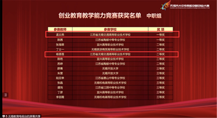 2022年4月18日-22日,由无锡市教育局、人社局、商务局、科技局、共青团无锡市委员会、邮政局联合主办的"创响无锡"2021年无锡市大中专院校创新创业大赛以“云比赛”方式圆满结束。我校8个入围决赛的团队均获奖,其中,一等奖1项、二等奖3项,三等奖4项。我校喜获知识竞赛“优秀组织奖”。