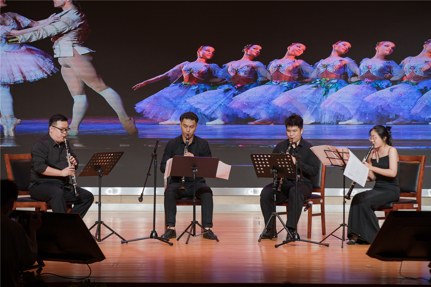 开幕式结束后,高雅艺术进校园活动拉开帷幕。无锡洛可可乐团的演奏家们为师生们带来一场精彩的管乐演奏表演,精彩的演出赢得全场师生的阵阵掌声与喝彩,现场感受高雅艺术的魅力