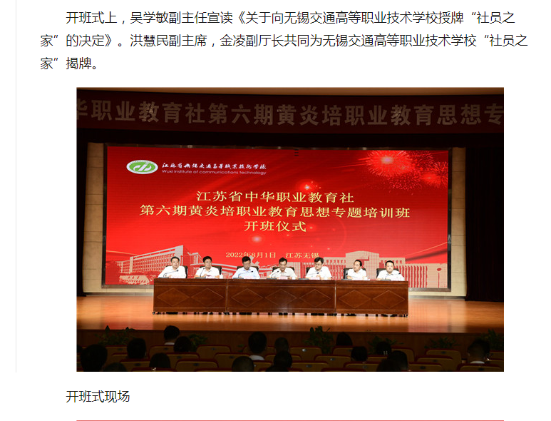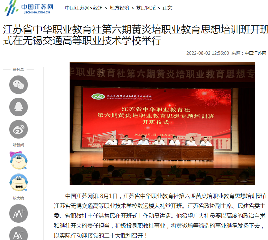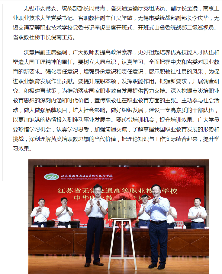 江苏省中华职业教育社第六期黄炎培职业教育思想培训班开班式在无锡交通高等职业技术学校举行