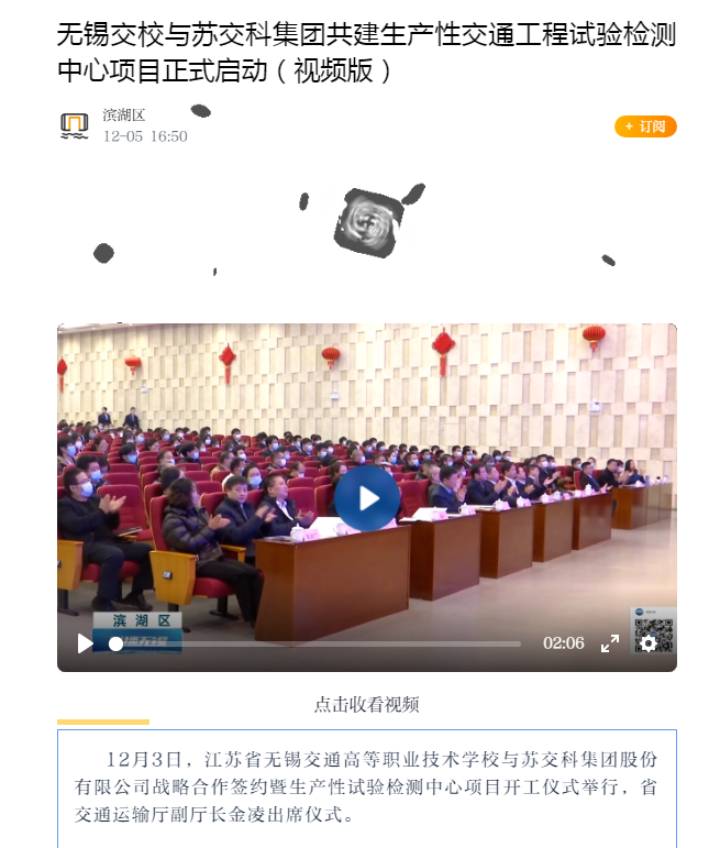 无锡博报:无锡交校与苏交科集团共建生产性交通工程试验检测中心项目正式启动(视频版)