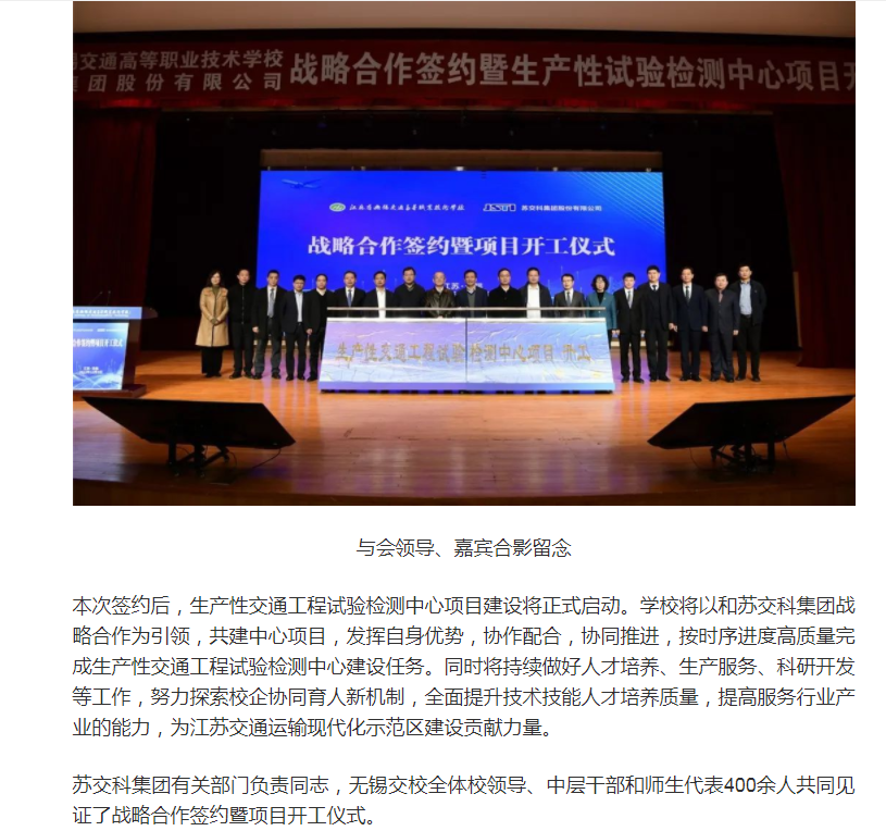 无锡博报:无锡交校与苏交科集团共建生产性交通工程试验检测中心项目正式启动(视频版)