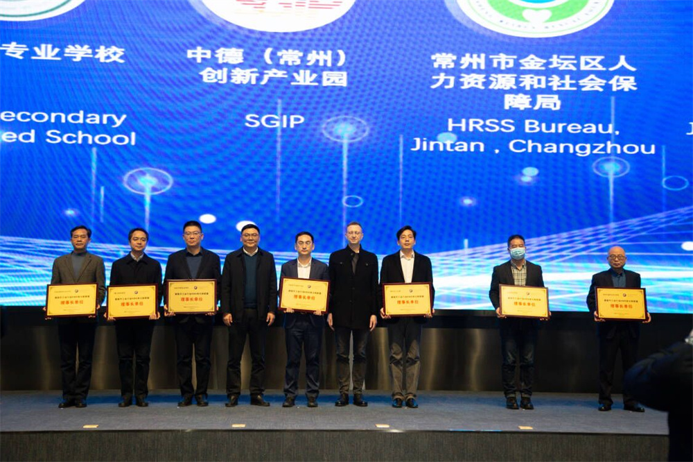 12月16日,中德HWK双元制联盟(以下简称“联盟”)成立大会暨2022中德高技能人才培养高峰论坛(以下简称“论坛”)在常州中德创新产业园举办。学校党委书记、校长李虎、副校长耿兴华及相关学院领导出席大会。大会由德国手工业行会和常州市金坛区人民政府共同举办,学校当选联盟理事长单位,李虎书记当选联盟理事长。