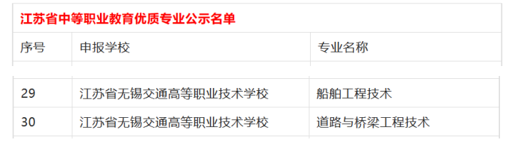 近日,在省教育厅公布的《关于开展江苏省优秀中等职业学校和优质专业申报工作的通知》(苏教职函〔2022〕41 号)中,经各设区市申报、专家评审,拟确定151个专业为江苏省中等职业教育优质专业。学校船舶工程技术和道路与桥梁工程技术两个专业被认定为省优质专业。