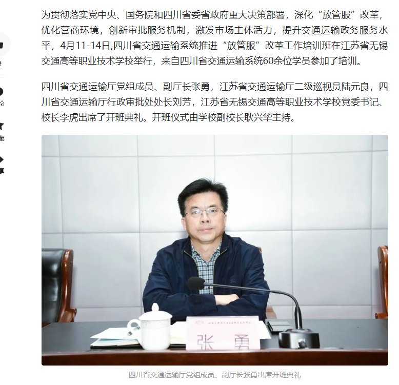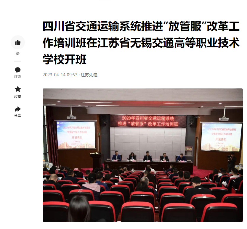 上一篇: 中江网:四川省交通运输系统推进“放管服”改革工作培训班在江苏省无锡交通职业技术学校开班