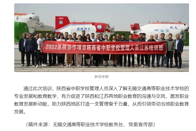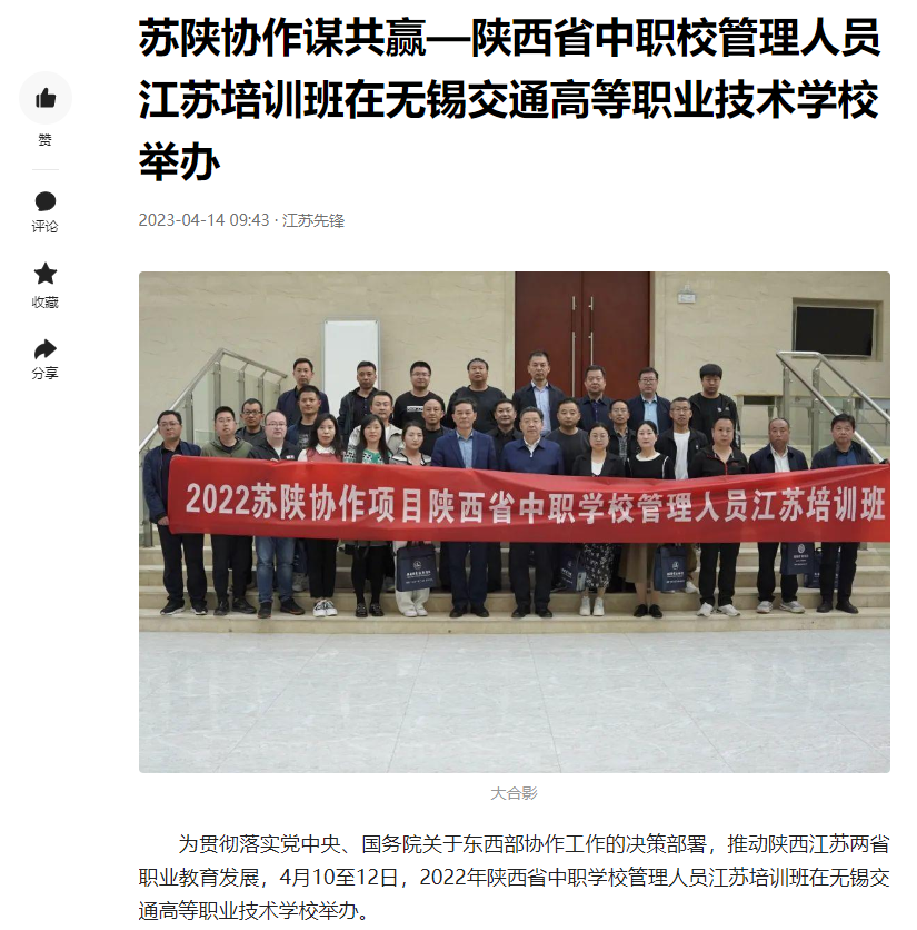 今日头条:苏陕协作谋共赢—陕西省中职校管理人员江苏培训班在无锡交通高等职业技术学校举办