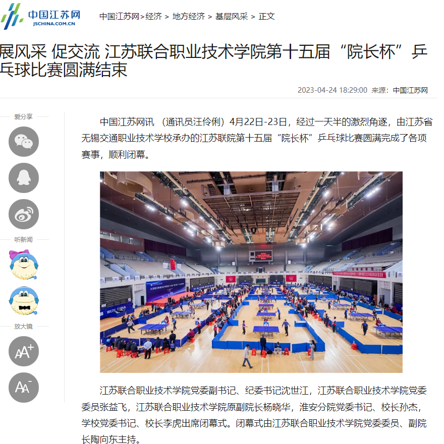 中江网:展风采 促交流 江苏联合职业技术学院第十五届“院长杯”乒乓球比赛圆满结束