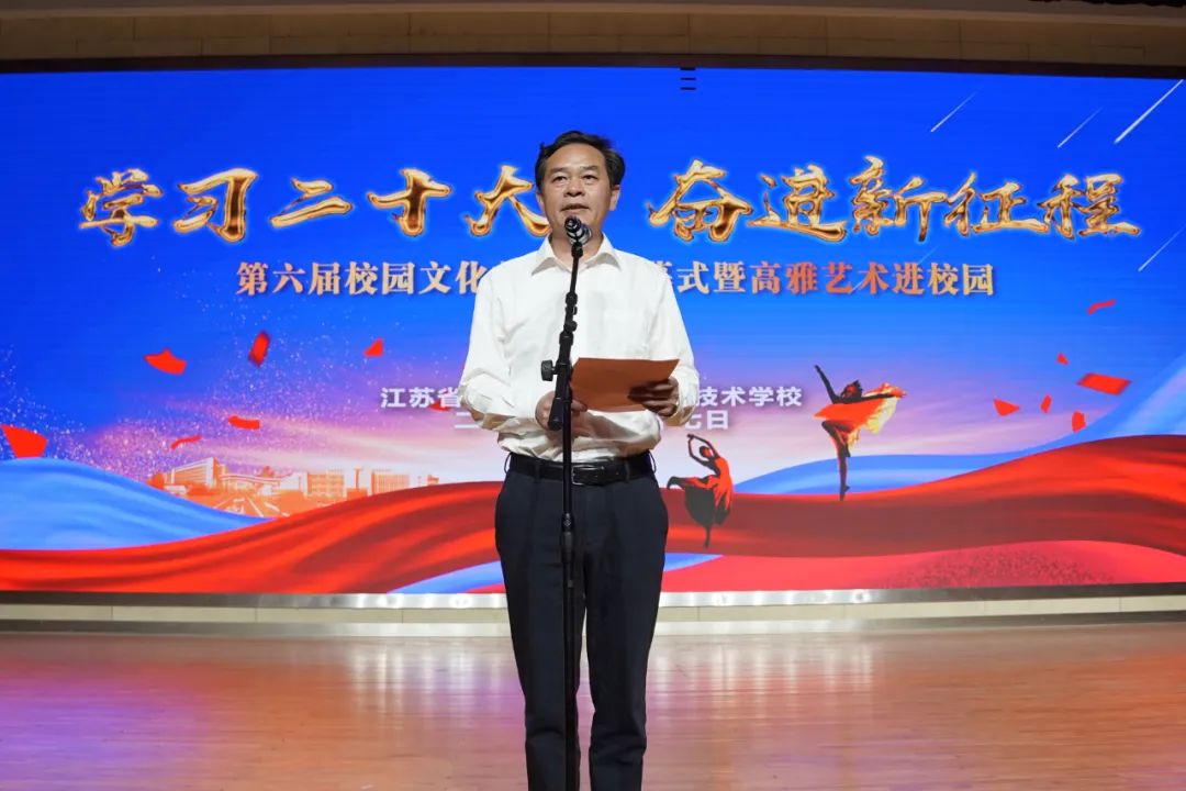 为进一步学习贯彻党的二十大精神,加强校园文化建设,营造积极健康、高雅文明的校园人文环境。5月17日,学校第六届校园文化艺术节开幕会暨高雅艺术进校园活动隆重举行。江苏省交通运输厅团委书记钱京江,学校党委书记、校长李虎,学校党委委员、副校长耿兴华、纪委书记邢勇、副校长范次猛出席此次活动。开幕式由校党委委员、副校长倪依纯主持。