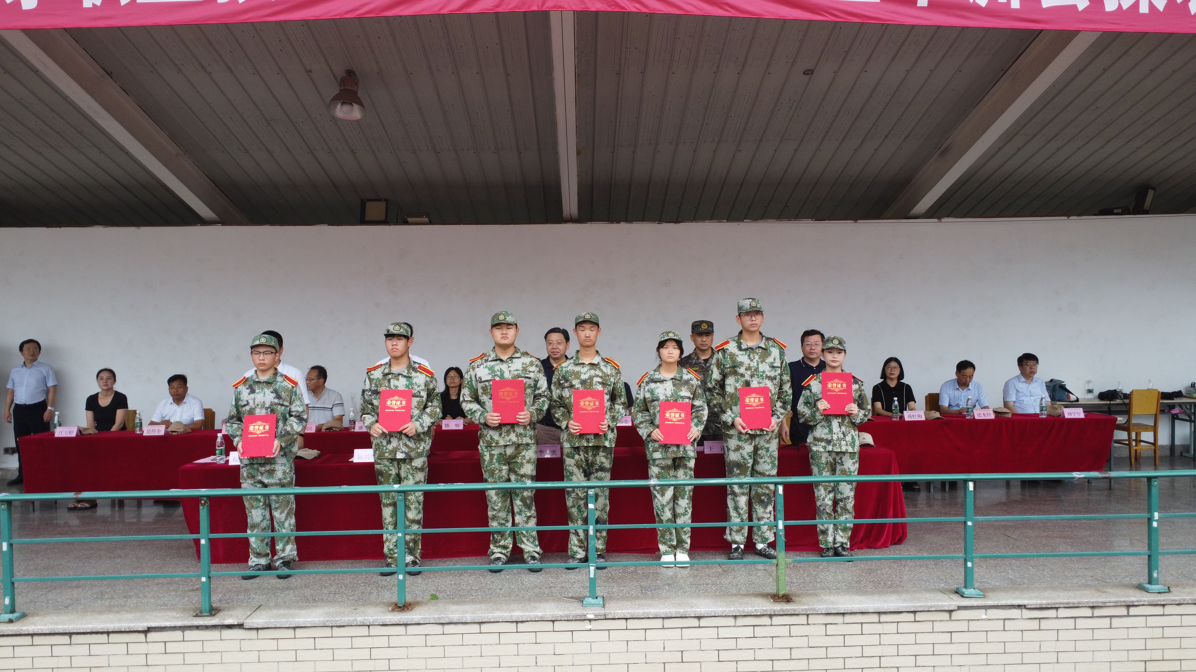 范次猛宣读《关于表彰2022级军训先进个人和先进集体的决定》。10个班级被授予“军训先进集体”荣誉称号, 162名同学获得“军训先进个人”荣誉称号。校领导为获得先进个人和先进集体的学生代表和班级代表颁奖。