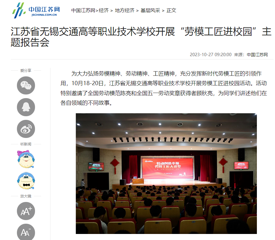 中江网:开云手机客户端开展“劳模工匠进校园”主题报告会