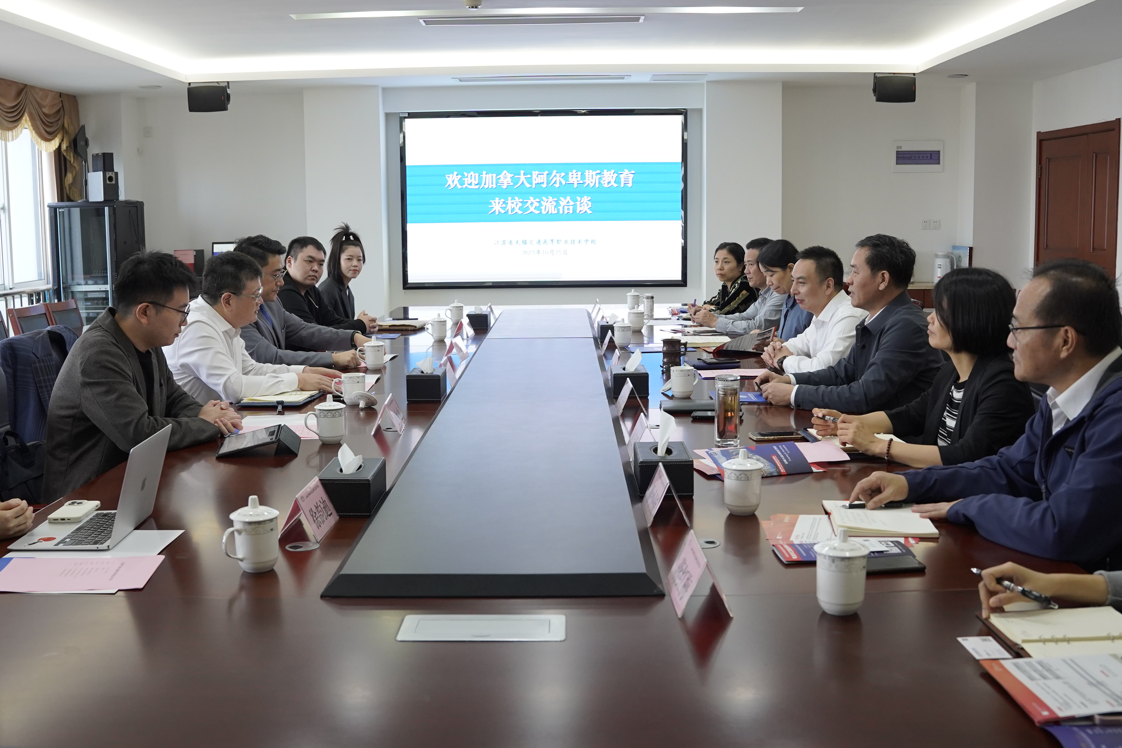 10月25日,加拿大阿尔卑斯教育CEO池水也、加拿大罗伯森学院招生办主任Felix Zhang一行来我校交流访问。学校校长、党委书记李进,副校长耿兴华等出席。阿尔卑斯教育相关负责人,学校相关职能部门、学院领导参加了交流。校企合作企业无锡汉神电气股份有限公司董事长何晓阳应邀出席。
