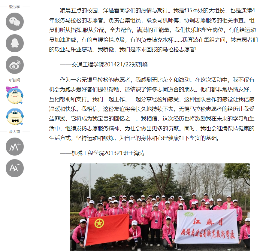中江网:开云手机客户端志愿者积极助力无锡马拉松活动