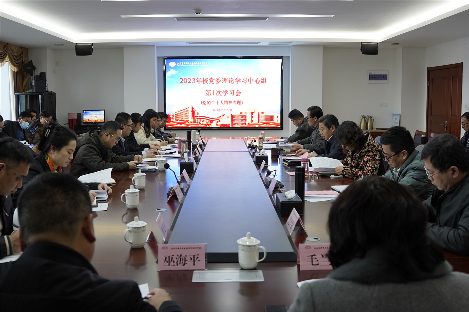 2月22日下午,学校党委理论学习中心组在512会议室举行新学期首次集体学习会,重点传达学习习近平总书记在学习贯彻党的二十大精神研讨班开班式上重要讲话精神。学校党委书记、校长李虎主持学习会并讲话。全体校领导、各处室、院部党政主要负责人参加学习。