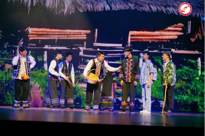 在语言艺术类专项赛中,我校师生自编自导自演的话剧《拉祜脱贫记》凭借出色的表现,荣获市级展演语言类金奖和市属院校艺术展演语言类金奖。该作品由郭晓琳、王涛、金晶三位教师担任主创,并带领学生全程参与剧本创作、排练演出等各个环节。话剧生动再现了中国工程院院士朱有勇带领云南拉祜族实现脱贫致富的感人故事。表演团队以沉浸式戏剧手法,将民族文化传承与乡村振兴实践深度融合,获得现场评委的高度评价。