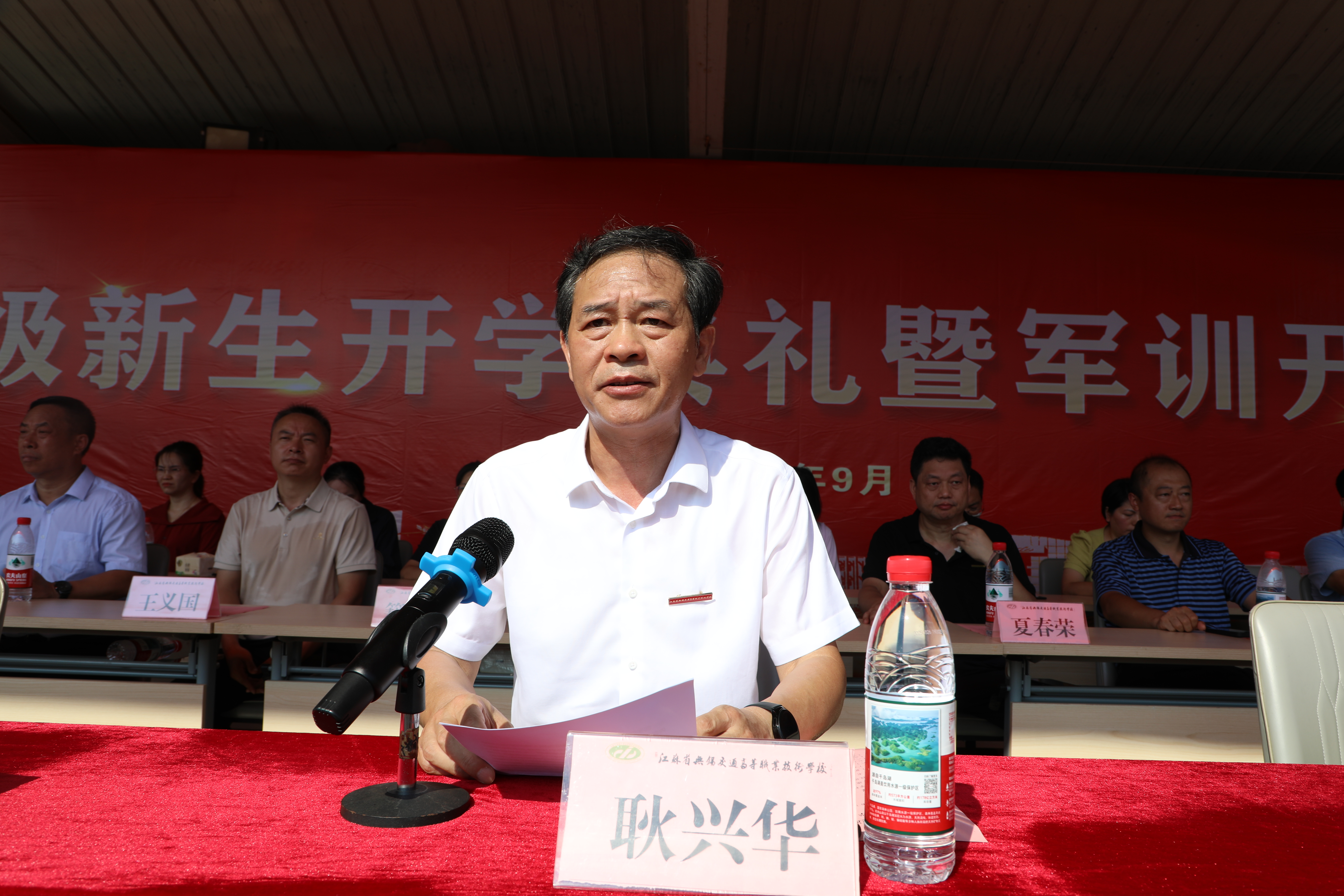 耿兴华作动员讲话。他代表学校全体师生向承训部队表示诚挚的谢意,向加入无锡交校大家庭的全体2025级新生表示热烈欢迎。他介绍了学校的基本情况,并对新生们提出四点希望。一要永葆“红心”,坚定理想信念。二要保持“专心”,勤学苦练技能。三要树立“信心”,勇于克服挑战。四要坚守“恒心”,力争全面发展。他希望全体新生以军训教育为契机,磨炼身体,锤炼意志,开启无愧于时代、无愧于自己的青春篇章。