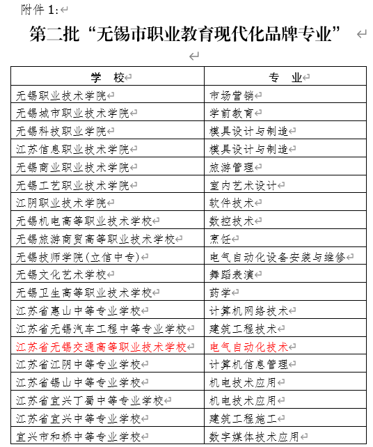 附件:1.第二批无锡市职业教育现代化品牌专业名单