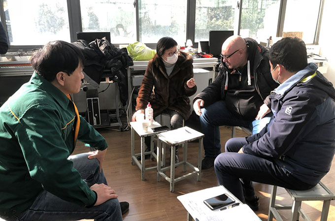 课后,karl与陆春松老师进行了交流,他认为陆春松老师本次课的讲授、指导非常具有针对性,强调了“决策”在教学“六步法”中的重要性,学生通过反复演算、计划,最终获得决策能力,为下一步实施计划起到了关键作用,教学效果良好。同时,他也对实训室5s的管理标准提出个人的看法,他认为中德实训室的管理要结合企业实际进行布置、管理,让学生一步步融入企业管理文化,为学生就业打下基础。