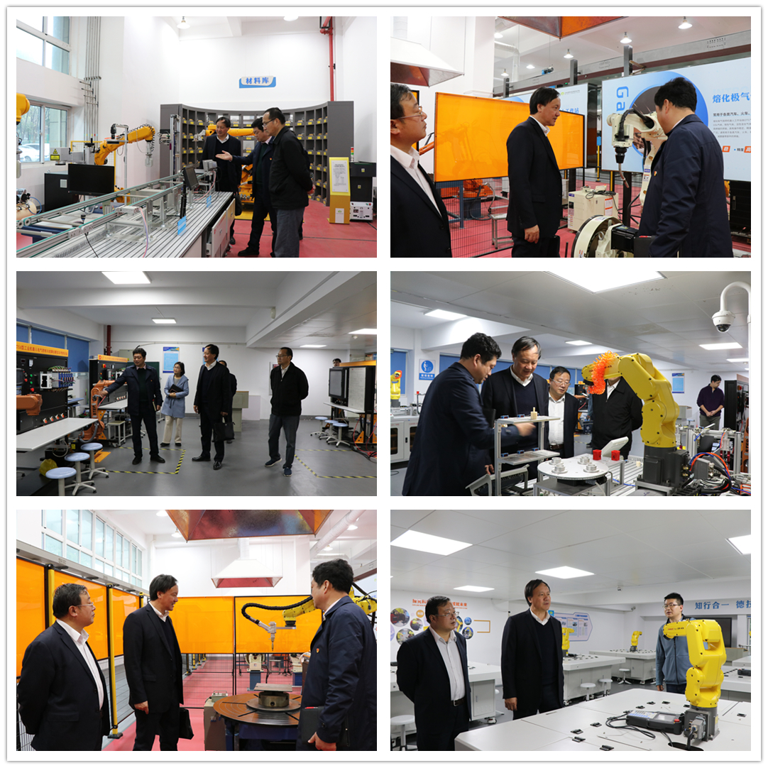 随后,扬州大学客人一行参观了交通装备工业机器人实训基地,对实训基地建设的前瞻性、科学性、实用性给予了充分的肯定。