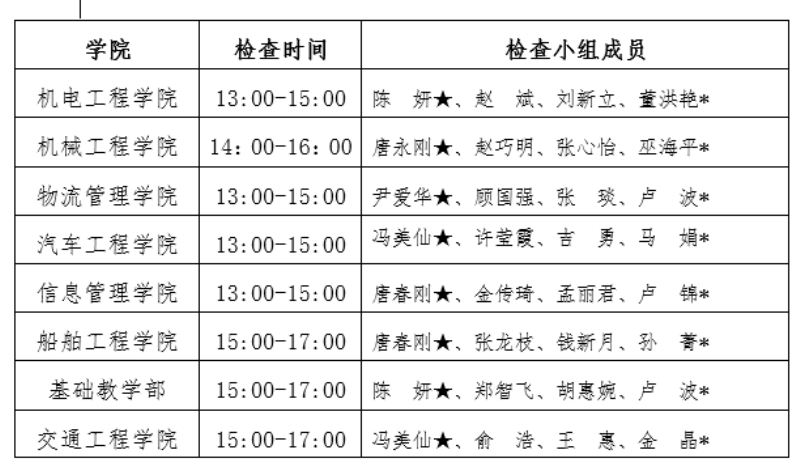 1.检查时间安排:111-12日教研室自查、院(部)抽查;113日学校检查。学校检查日程安排如下:
