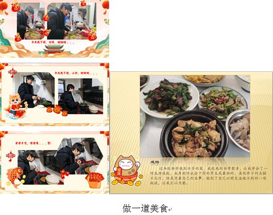 为加强对过年传统习俗的了解,同学们结合自身特点,进行了不同的生活体验,各级开展“五个一”活动。