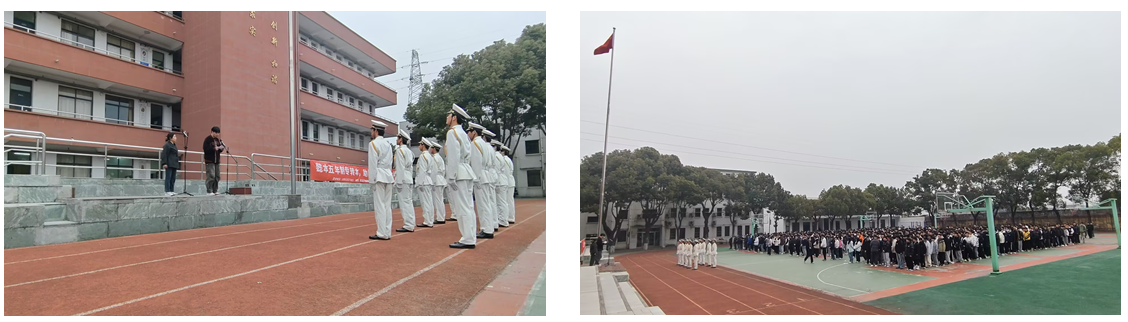 上午7时35分,升旗仪式正式开始。伴随着雄壮的《义勇军进行曲》,国旗护卫队迈着铿锵有力的步伐护卫国旗入场。在全体师生的注目下,鲜艳的五星红旗冉冉升起,迎风飘扬。少先队员行队礼,共青团员与教师行注目礼,共同表达对祖国的热爱与对雷锋精神的崇高敬意。