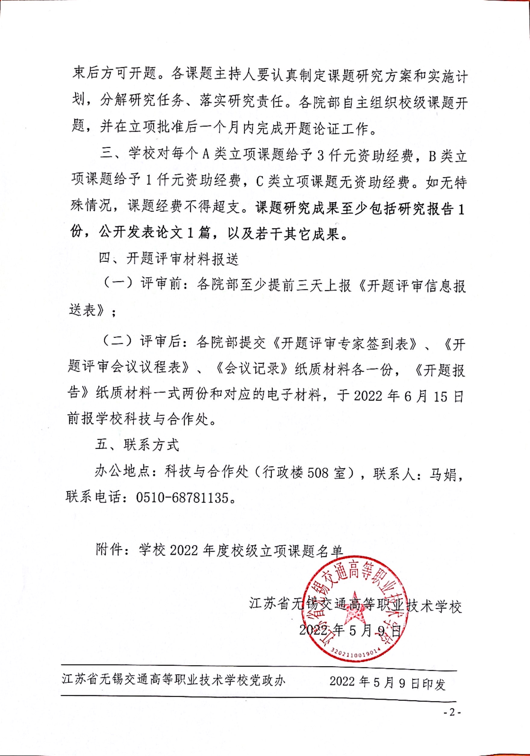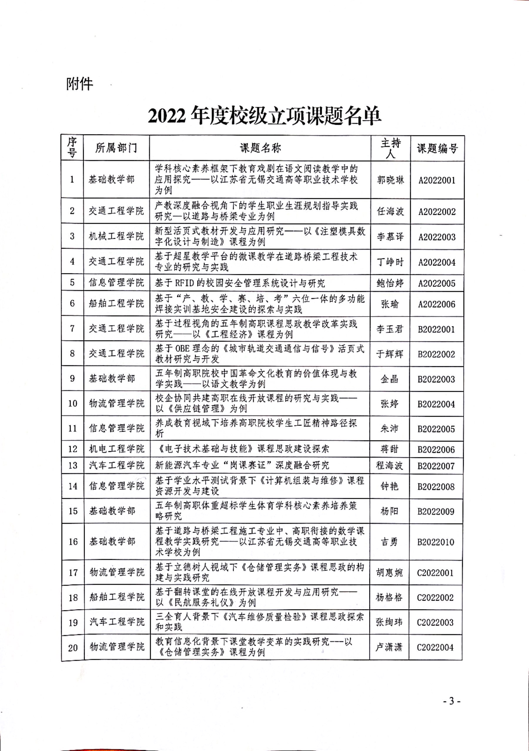 关于公布2022年度校级立项课题的通知