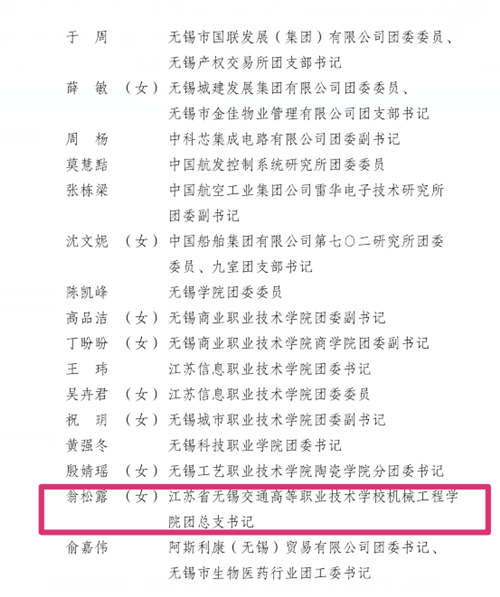 我校开云手机客户端信息管理学院团总支获评“无锡市五四红旗团支部(团总支)”,船舶工程学院181121(41)班李丹凤同学和信息管理学院181612班赵唯一同学获评“无锡市优秀共青团员”,机械工程学院团总支书记翁松露同志获评“无锡市优秀共青团干部”。