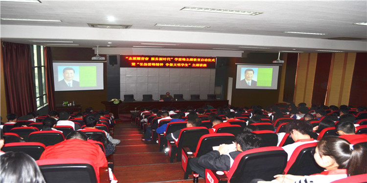 为学习贯彻习近平新时代中国特色社会主义思想,认真落实十九大报告中“推进志愿服务制度化”的要求,大力弘扬雷锋精神,掀起我校学雷锋志愿服务新高潮,3月6日下午,学生工作处、团委在学术报告厅举办“志愿耀青春 服务新时代”主题教育启动仪式暨“弘扬雷锋精神,争做文明学生”主题讲座。学校关工委副主任、原正校级调研员王金毫同志,副校长邢勇同志,学生工作处处长兼团委书记吴雪琴老师、团委副书记孙霞老师、各学院团总支书记以及近200名志愿者代表参加了此次活动。