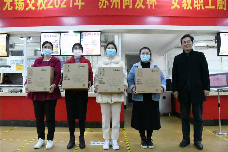 阳春三月,最美女神季。为了丰富女教职工的业余文化生活,3月12日,学校在一号食堂举办女神节系列活动——2021年“苏州同发杯”女教职工厨艺大比拼活动。学校党委书记、校长李虎亲临现场并宣布比赛正式开始,他还为参赛选手鼓舞助力。学校副校长、工会主席耿兴华变身“美食鉴定官”。