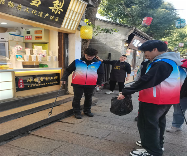 在惠山古镇,志愿者们到景区开展团聚青春力量,倡导文明旅游青年学雷锋志愿服务主题活动,以实际行动引导游客增强生态文明观念和环境保护意识,为游客营造干净舒适的游园环境。