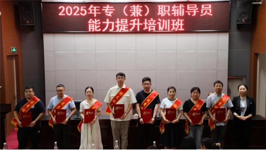 为全面提升学生工作队伍的业务能力和综合素养,帮助专(兼)职辅导员更好地适应新时代学生工作的新要求,9月8日至9日,学校成功举办了2025年专(兼)职辅导员能力提升培训班。学校党委委员、副校长吴雪琴出席开班典礼,各二级学院分管学生工作的领导、学工办主任、学工干事、2025级新生班专(兼)职辅导员80余人参训。开班典礼由学生工作处处长、团委书记王光祥主持。