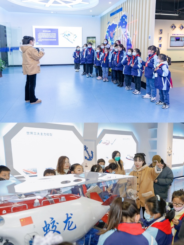 全程由船舶工程学院院长吴志亚和讲解老师带领志愿者和小学生参观了整个船文化中心,并进行了生动有趣的讲解和体验。小学生们被各类船舶模型、航海模拟器、VR和全息等设备深深地吸引,纷纷排队体验。通过参观、交流和体验,使小学生们对船文化及航海有了更进一步的认识和了解。此次活动让小学生们认知船舶专业,感受船文化,激发其民族自豪感和爱国主义热情,拓展了学习视野,增强海洋意识,培养热爱科学、大胆实践和勇于创新的精神。