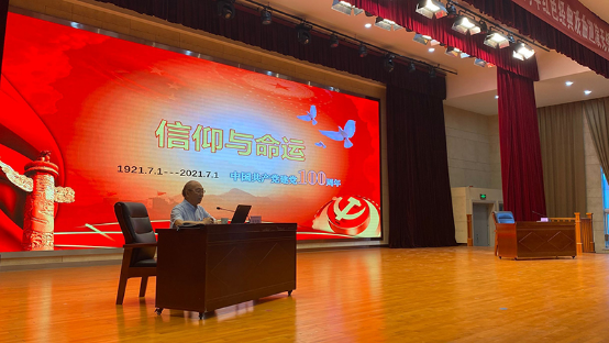 5月20日下午,机电工程学院组织开展“信仰与命运——深入学习党的历史,矢志不渝跟党走”主题党史学习教育。此次活动有幸邀请到了无锡市关工委常务副主任、原中国人民解放军总参第五十六研究所政委张发海同志做主题演讲,本次活动由机电工程学院党总支副书记王光祥主持,机电工程学院全体学生参加此次活动。本次活动围绕中国共产党成立100周年展开。首先,张发海政委讲述了100年来中国共产党的奋斗历程以及所取得的举世瞩目的成就,在各个历史时期,不同的共产党员前赴后继,用自己的热血和生命践行自己的理想和信念,以国家的独立和复兴,国家的繁荣与富强,人民的解放和幸福作为自己的奋斗目标。作为共产党员,他们不顾个人性命和安危,想的是如何实现党的理想和肩负的使命,他们的人格和信仰都闪耀着真理的力量和光辉。正是一代又一代共产党员的付出和奉献,才有当下中华民族的富强,才有如今华夏大地的繁华。