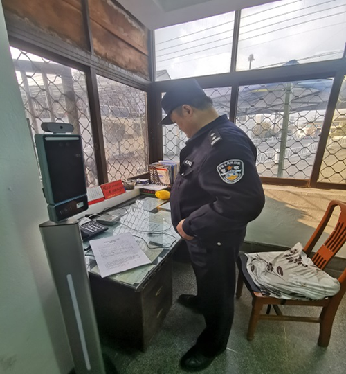 检查中,郭警官一行人员到校后直奔现场,分别对校区门卫室、保安值班室、视频监控室、探头安装点等场所部位进行了现场检查,并对门卫防暴器材、视频监控、一键报警等安防设备进行了现场测试。郭警官还重点对保安人员的业务知识和治安防范要点进行了询问,同时还检查了各类治安登记本的填写记录情况,并给出积极的意见和建议。