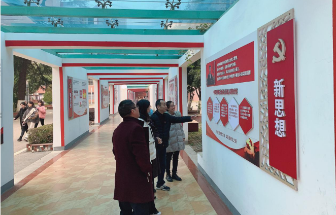 在参观党建长廊的同时,老党员闻惠中同志向新加入支部的党员干部介绍党建长廊的主线内容,并向全体党员干部提出倡议,希望全体党员干部可以自觉加入到“党史、新中国史、改革开放史、社会主义发展史”的学习中去,以理论知识武装自己,把我党的为中国人民谋幸福、为中华民族谋复兴、为世界谋大同的实践史向广大师生传播。