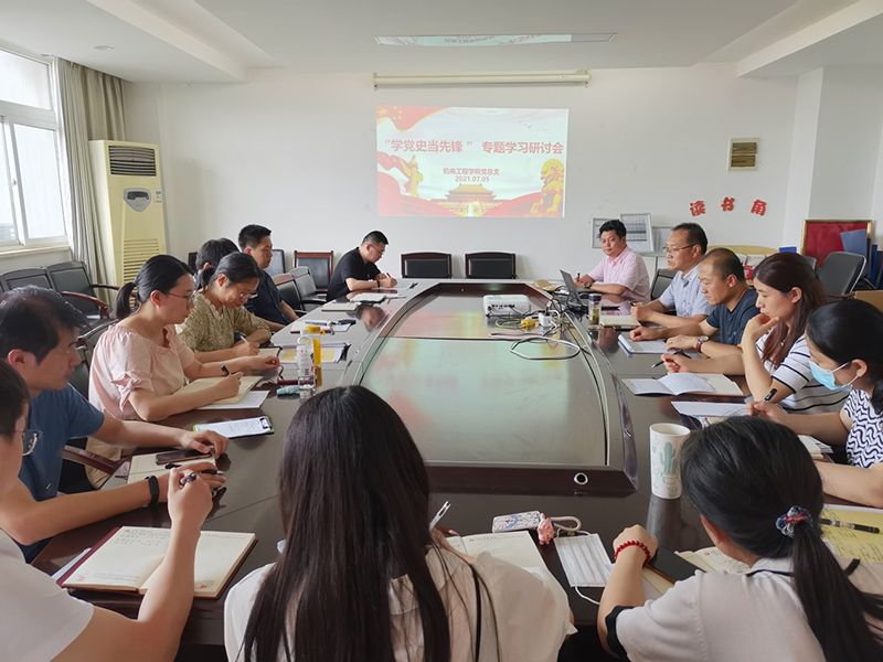 2021年7月5日,机电工程学院党总支组织全体党员召开了“学党史 当先锋”专题学习交流研讨会,会议由学院党总支书记徐小国主持。