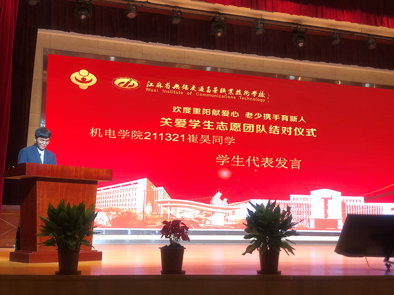 20211014日上午,学校组织“欢度重阳献爱心 老少携手育新人”关爱学生志愿团队结对仪式。在活动中,我校离退休老同志在校关工委、退教协的组织下,自2021年开始,每年将对新生中贫困的学生采取一对一、多对一进行认领捐赠、直接捐赠等帮扶方式,对高职学生前四年、中职学生前两年进行连续帮扶,每年资助每名学生200元,并多方面关爱,通过线下线上长期联系,帮助学生成为品学兼优、学有所长的高素质技能人才贡献智慧与力量。