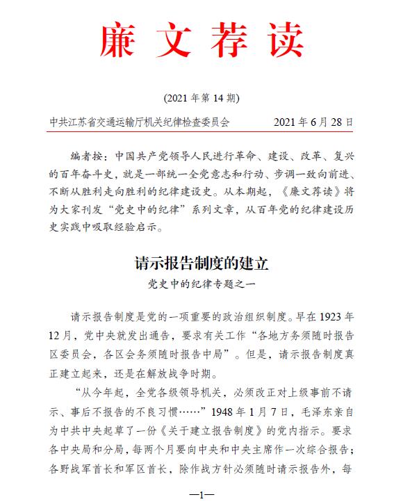 2021年廉文荐读第14期——请示报告制度的建立
