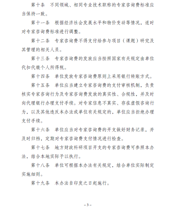 中央财政科研项目 专家咨询费管理办法