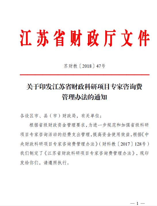 江苏省财政科研项目专家咨询费管理办法