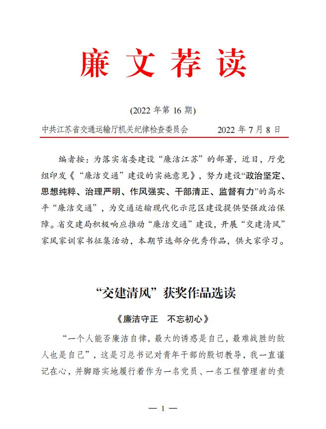 2022年廉文荐读第16期——《交建清风》获奖作品选读