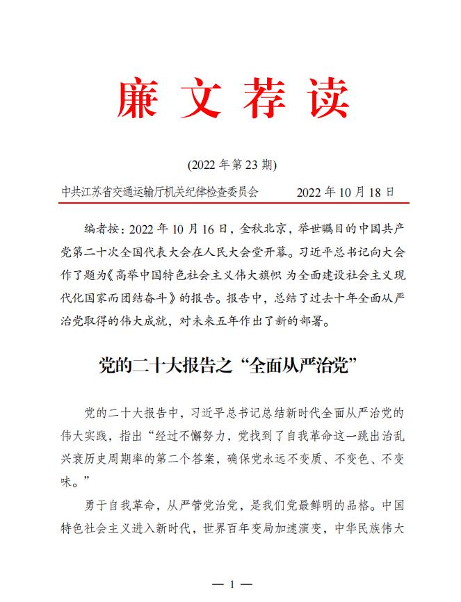 2022年廉文荐读第23期——党的二十大报告之“全面从严治党”